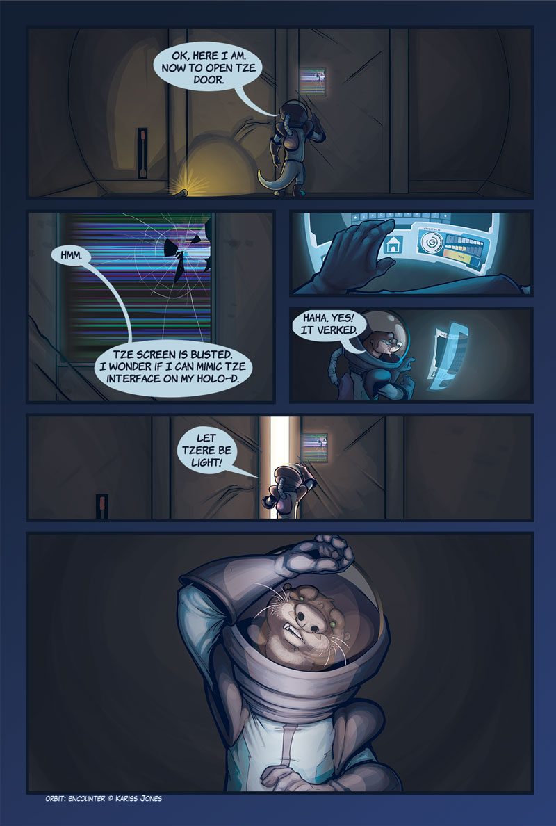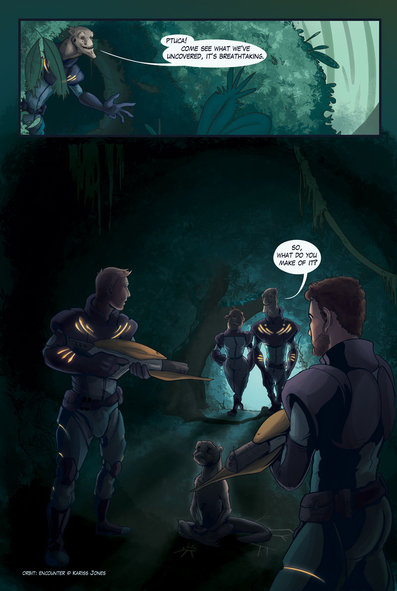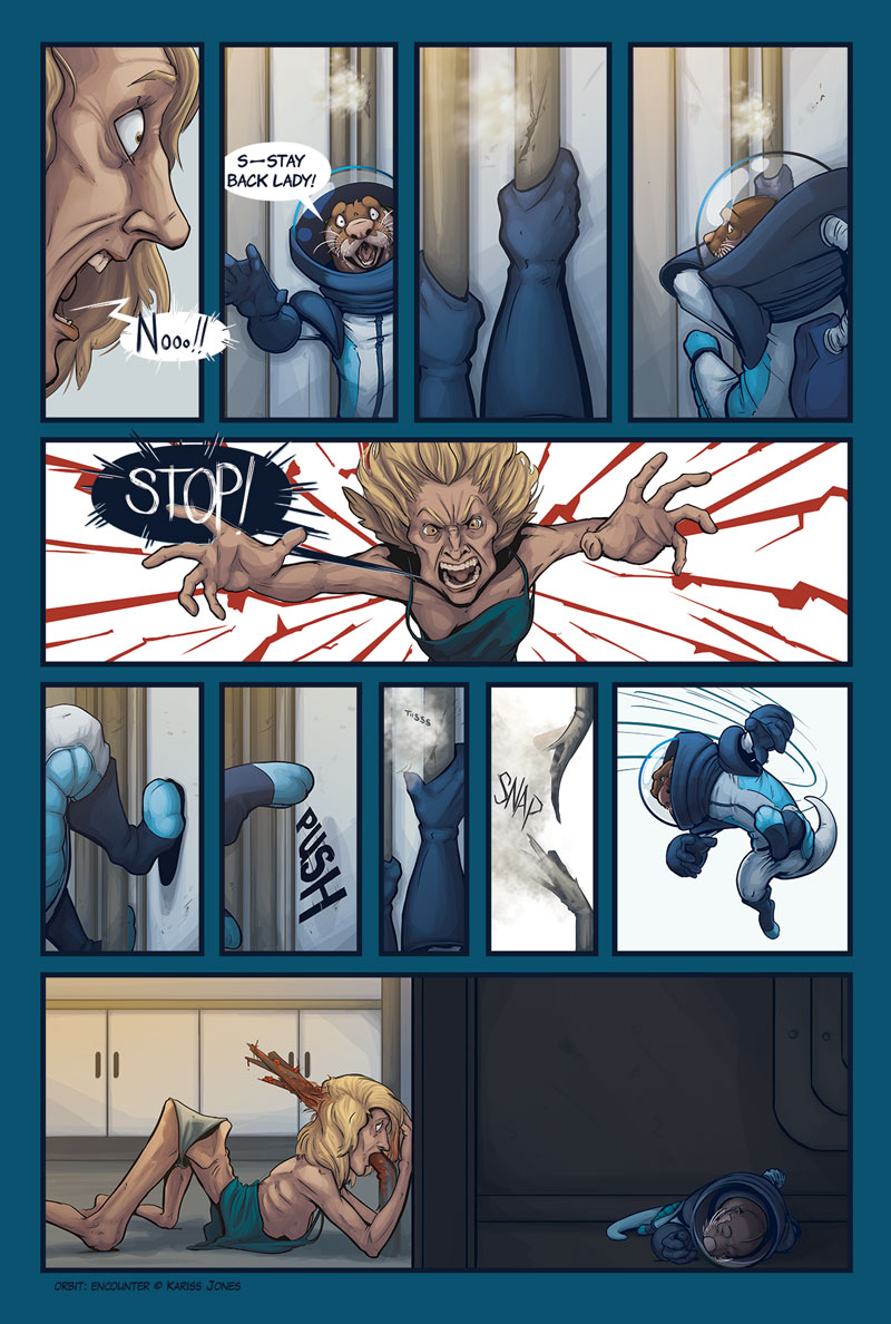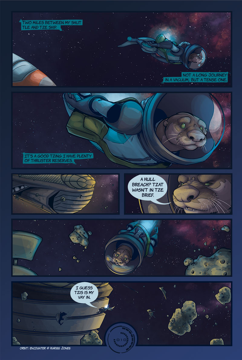 Orbit: Encounter is my own personal webcomic project which was first published in late 2014. It has been my main source of technical and professional growth over that time. I have run a successful Kickstarter campaign to get the first 2 chapters self-published and printed. I am currently working towards finishing the first Volume of this webcomic and starting a crowdfunding campaign to get that printed.