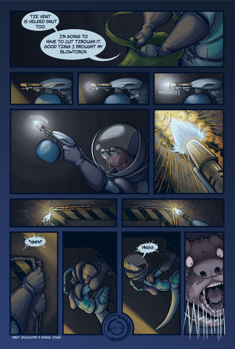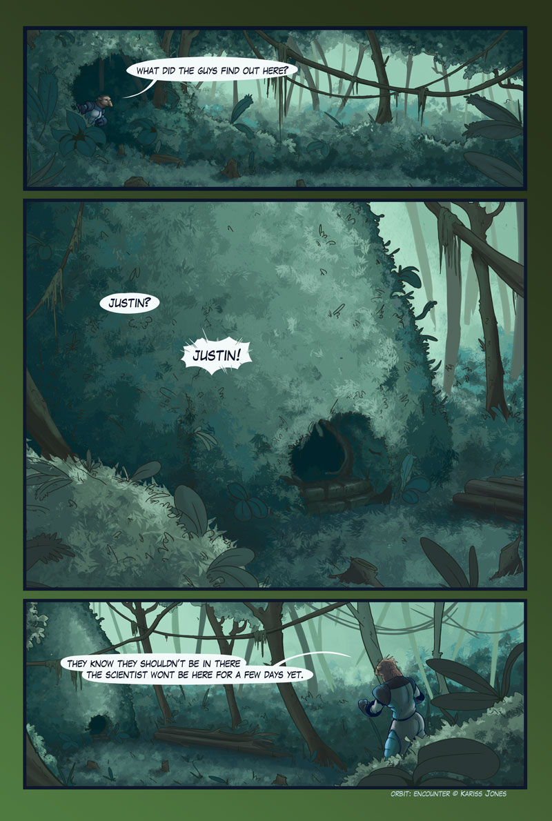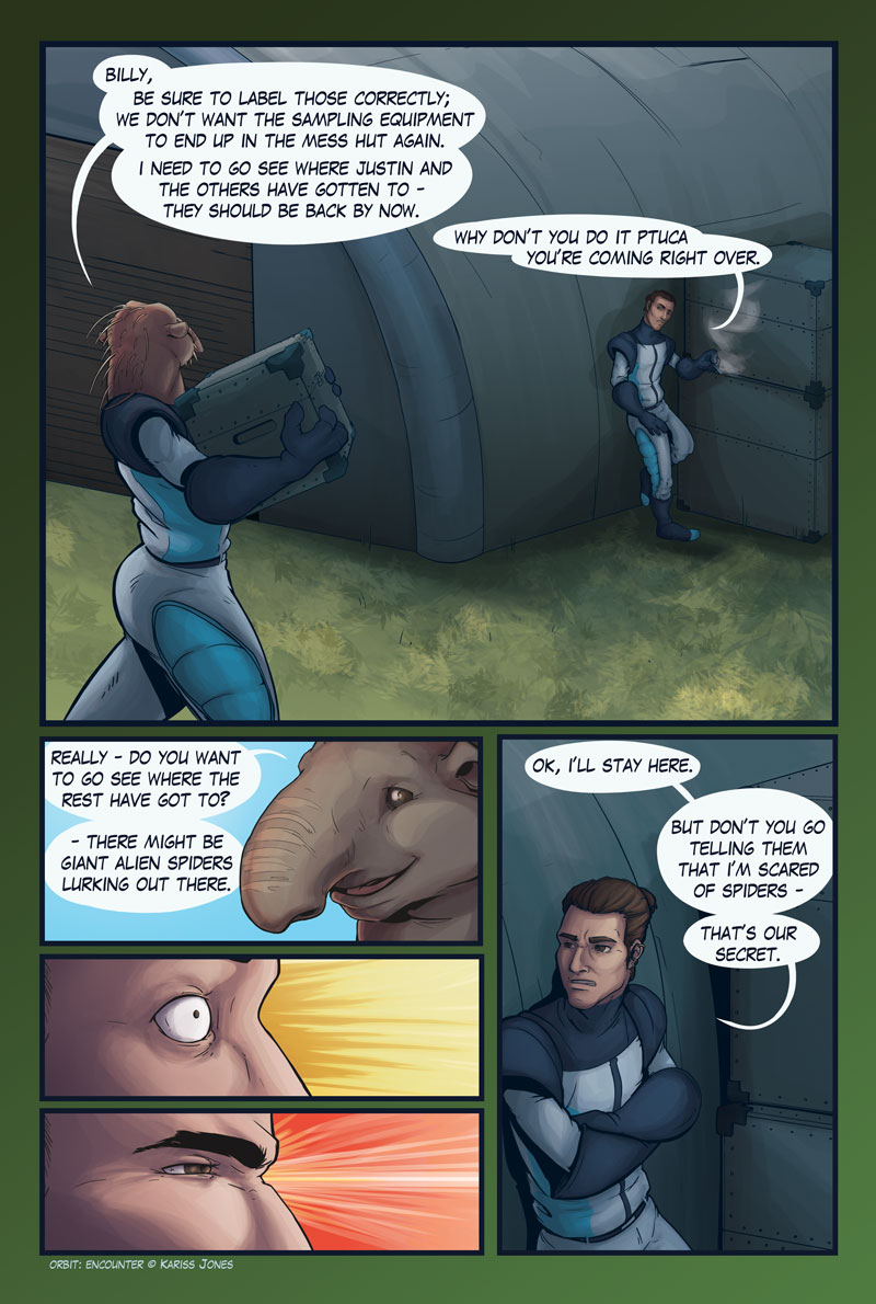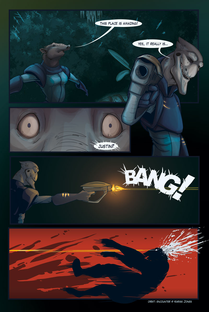 Orbit: Encounter is my own personal webcomic project which was first published in late 2014. It has been my main source of technical and professional growth over that time. I have run a successful Kickstarter campaign to get the first 2 chapters self-published and printed. I am currently working towards finishing the first Volume of this webcomic and starting a crowdfunding campaign to get that printed.
